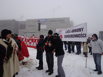 Manifestacja LOS zgromadziła około 50 osób, których nie wystraszył kilkustopniowy mróz.Manifestacji kierował Przewodniczący LOS Wojciech Podjacki.